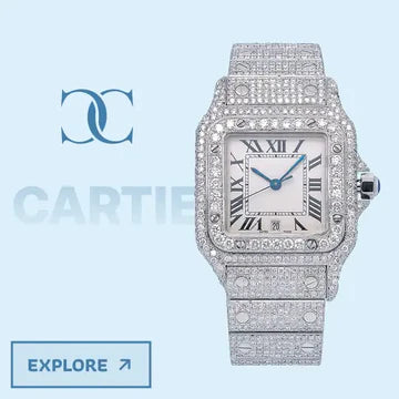 Cartier Inspired Moissanite Watches showcase graceful design and sparkling elegance. With each piece iced in VVS moissanite diamonds, these watches offer a perfect mix of classic beauty and modern shine—ideal for every elegant occasion.