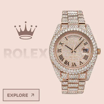 Rolex Inspired Moissanite Watches offer timeless beauty and everyday luxury. Covered in VVS moissanite diamonds, these watches blend iconic design with high-end shine—perfect for those who value tradition, style, and presence in every moment.