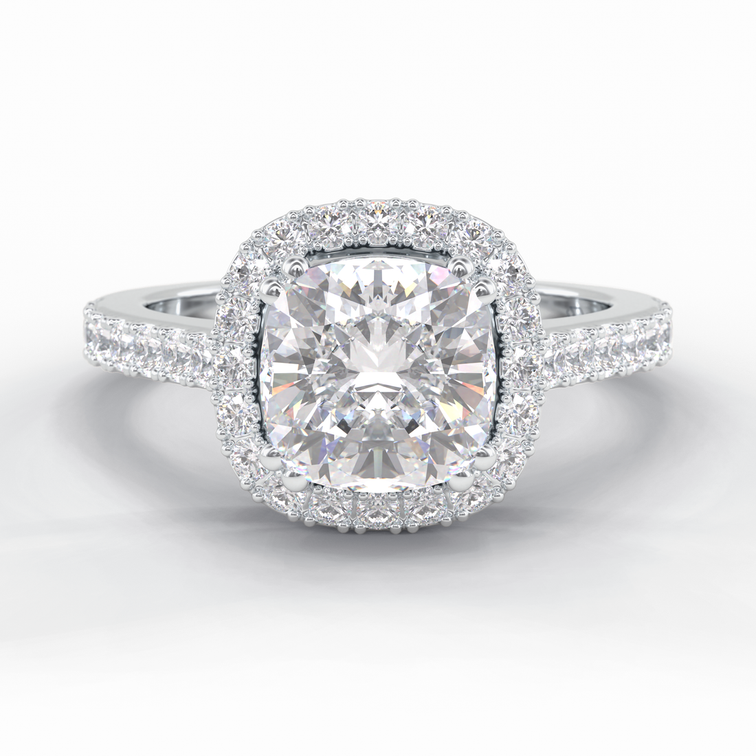 Elysian Spark 2 Carat VVS Lab‑Grown Cushion Halo Engagement Ring in 18K Gold