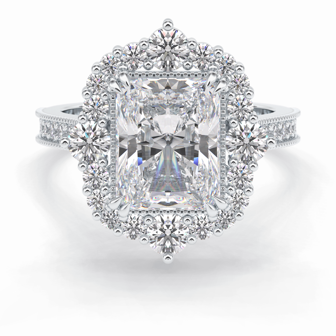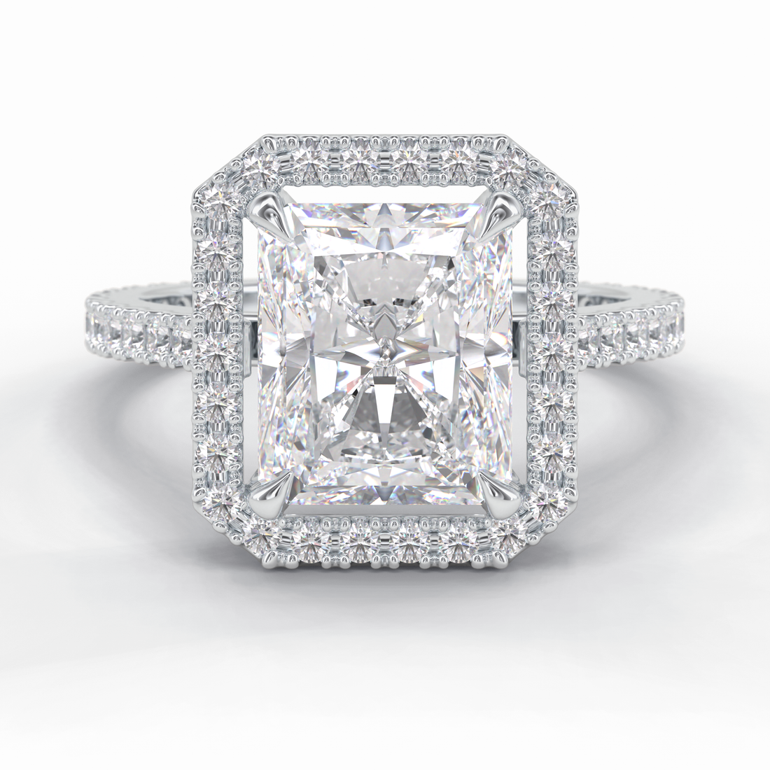 Grand Regent 4.51 Carat Radiant VS1 Lab-Grown Halo Engagement Ring in 18K Gold