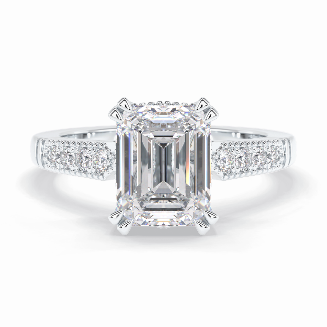 Regent 0.54 Carat Emerald VS1 Lab-Grown Pave Engagement Ring in 18K Gold