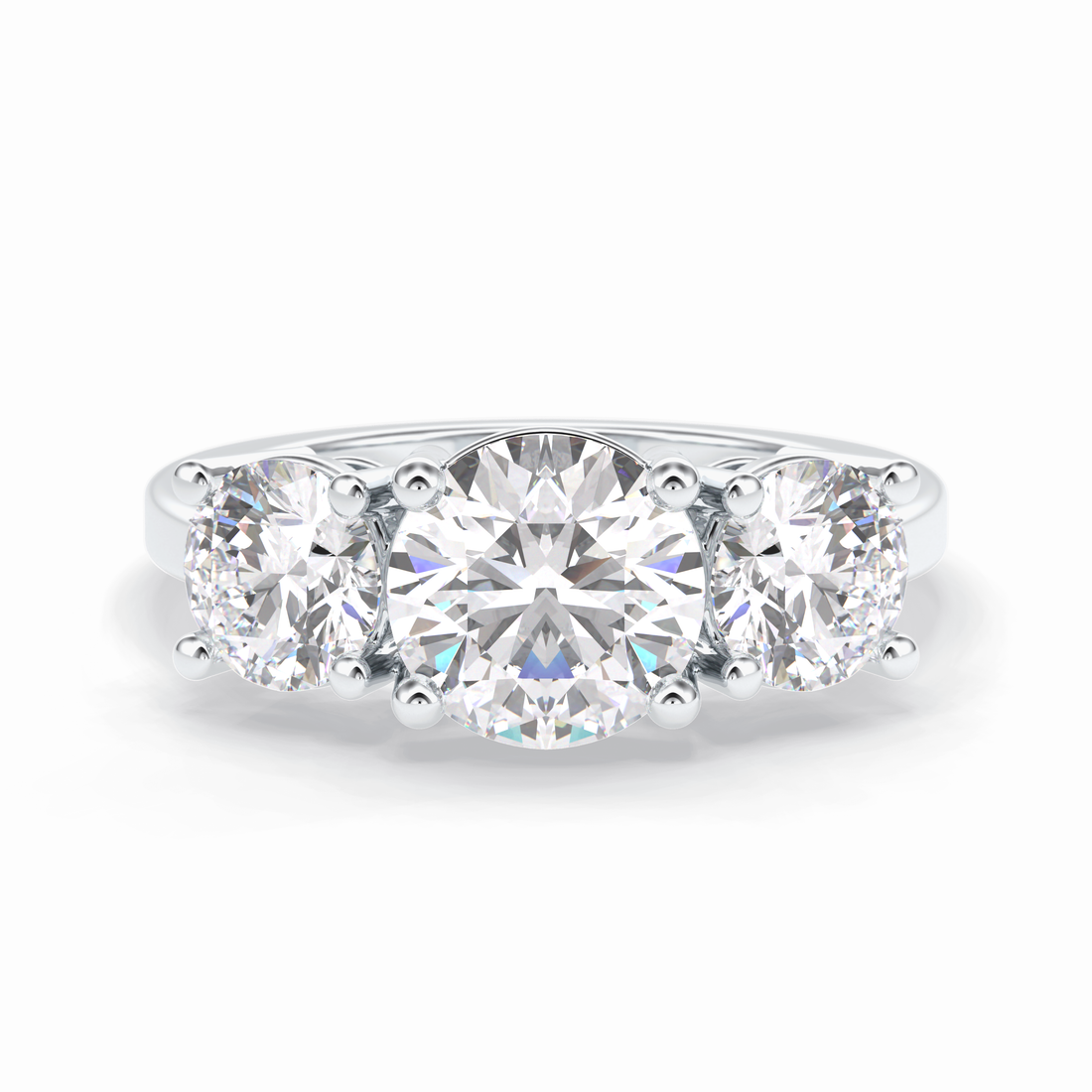 Trilogy Radiance 1.82 Carat Round VS1 Lab-Grown Three Stone Engagement Ring in 18K Gold