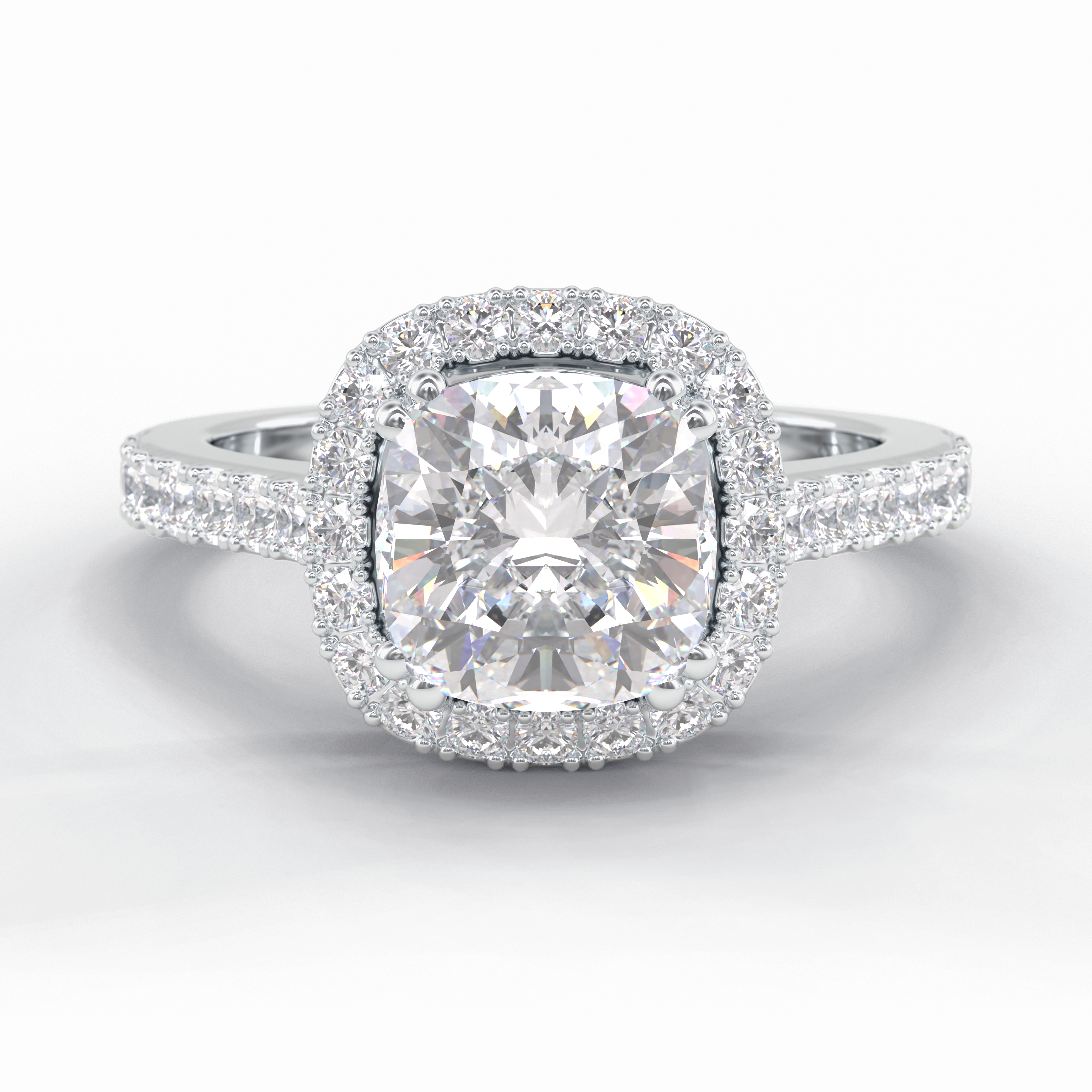 Embrace the glow of Heerok's Luminous Cushion Halo Ring, where luxurious craftsmanship meets contemporary elegance. This engagement ring boasts a 2.37 carat cushion-cut VS1 lab-grown diamond, celebrated for its impeccable clarity and cut. Encircling this central gem is a halo of 35 round-cut diamonds, adding an additional 0.56 carats of luminance, each stone meticulously chosen for their exceptional E-F color and VVS clarity. Set in your choice of 18k white, rose, or yellow gold, the design is anchored by a refined 1.60mm shank and is constructed to ensure a weighty presence with 5.98 grams of gold, making every gesture a statement of enduring love.